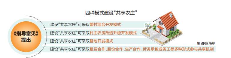 《指导意见》提出,建设“共享农庄”可采取整村综合开发模式。由企业或农民合作社对整村进行统一规划、统一建设,利用村庄整治、宅基地整理等节约的建设用地和“四荒地”、厂矿废弃地、砖瓦窑废弃地、道路改线废弃地、闲置校舍、村庄空闲地等建设民宿和其他相应设施,民宿可以出租,民宿的全部或部分经营权、股权可以转让;将整村农用地进行统一规模化生产经营,消费者可以租赁农用地经营权或认养农作物,企业或农民合作社为消费者提供系列服务。